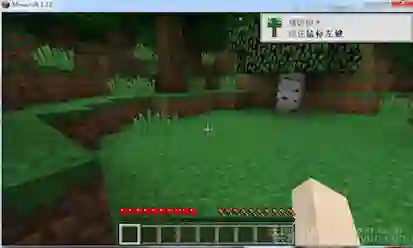 刚进入游戏视角感所呈现的是第一视角,还有就是给你配备了一把木棍你可以用它来生存,左击鼠标木棍可以敲打你指定的物件,你可以用键盘WASD键控制方向遇到台阶可以用空格键跳一下。