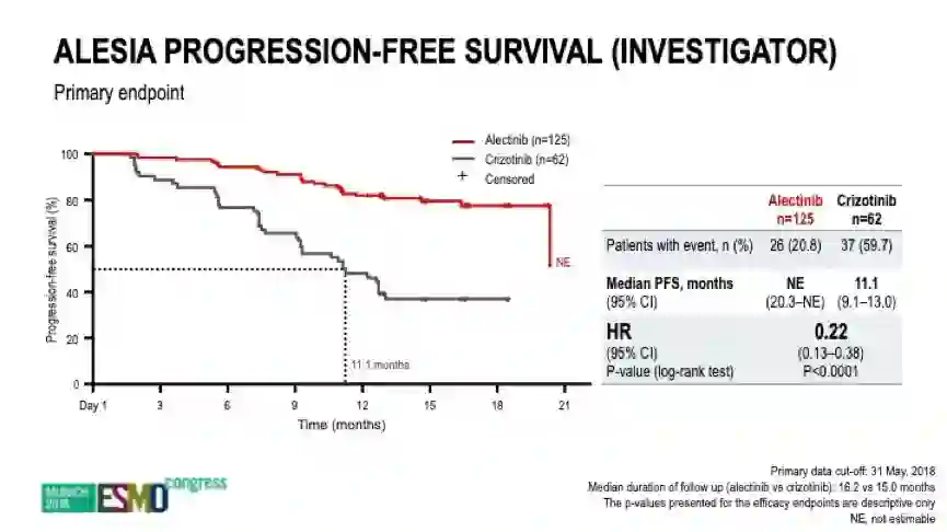三项研究一致的证实,阿来替尼显著优于克唑替尼。