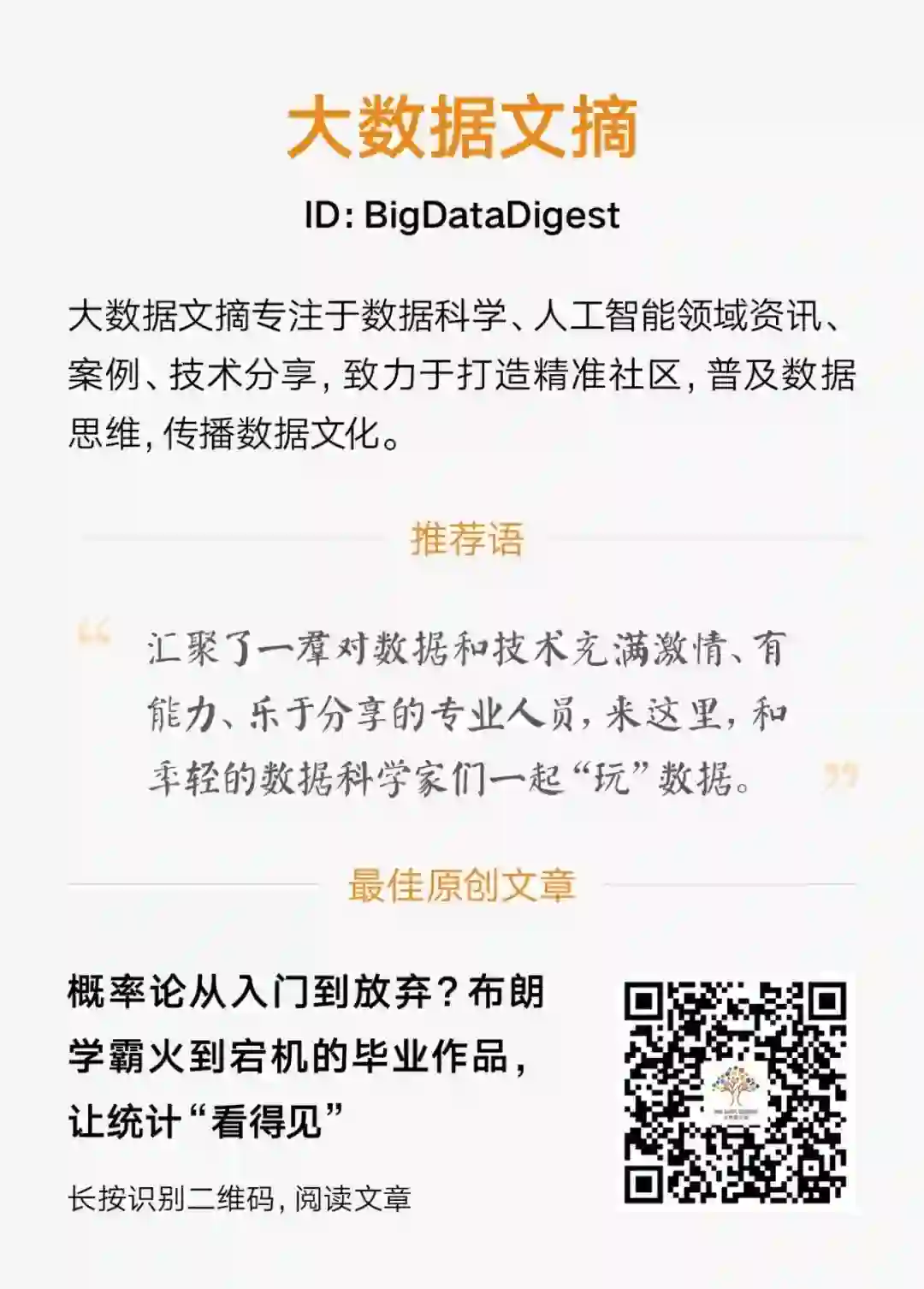 大数据文摘作为行业里的中间力量,不断的为读者提供更多优质内容而努力。这里汇聚了一群对数据和技术充满激情、有能力、乐于分享的专业人员,365天无休地为您送上最新最有料的资讯。