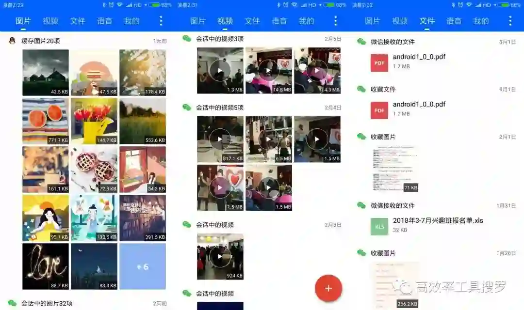它可以轻松识别出微信和QQ 缓存的图片,视频,语音文件等等。