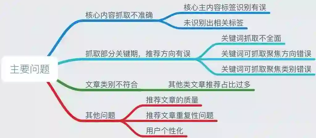 2)抓取部分主要关键词,但推荐文章方向有误(6个问题)此问题占比14%;