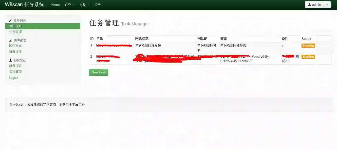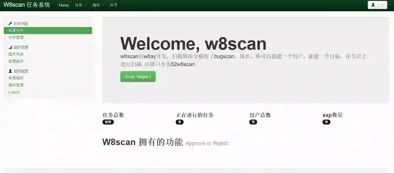 w8scan只需要搭建在php+mysql的环境下,然后客户端只需要安装了python2.7的环境,就可以完美运行了。