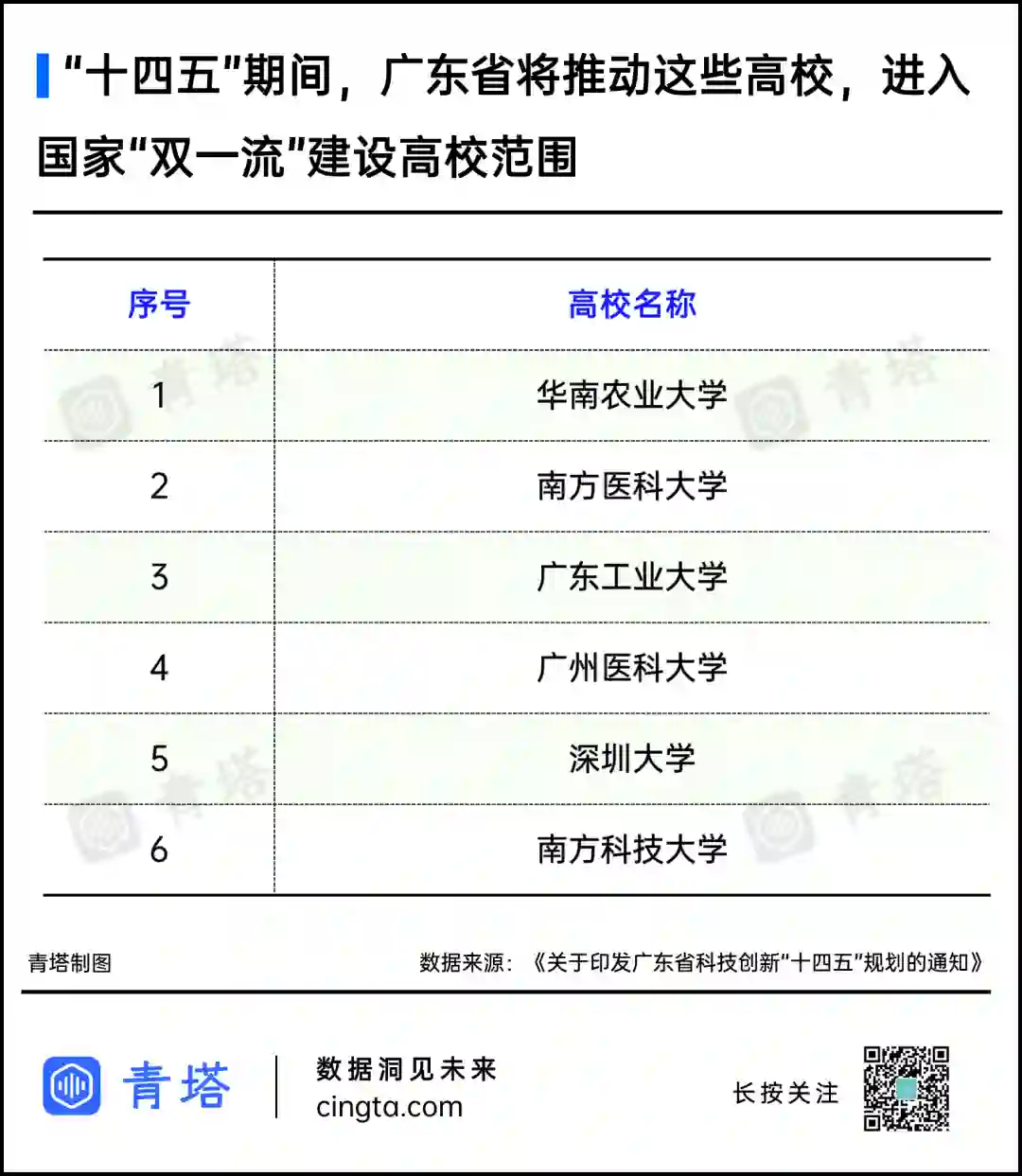 ▎“十四五”期间,广东省推动这些高校进入国家“双一流”建设