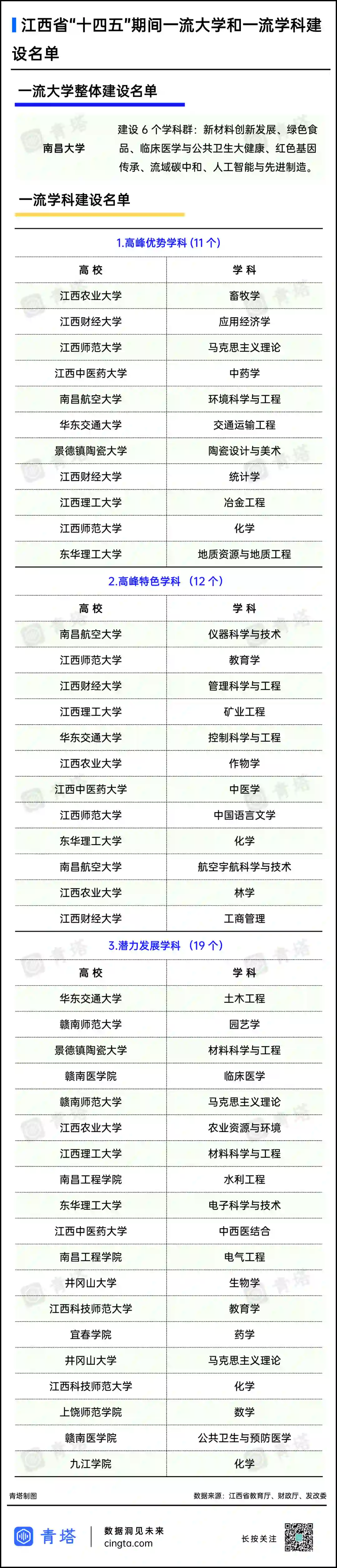 日前,江西省“十四五”期间一流大学和一流学科建设名单正式出炉。