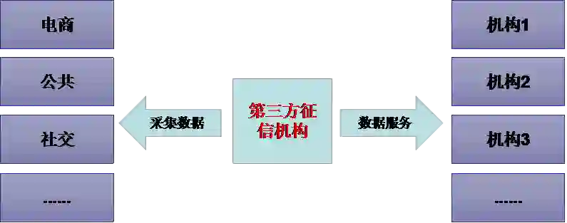 该模式下,第三方征信机构运用技术手段,通过各种途径,采集多类数据,并对数据进行加工后对外提供服务。目前,国内采用第三方征信模式的主要是2015年批筹的8家个人征信公司。
