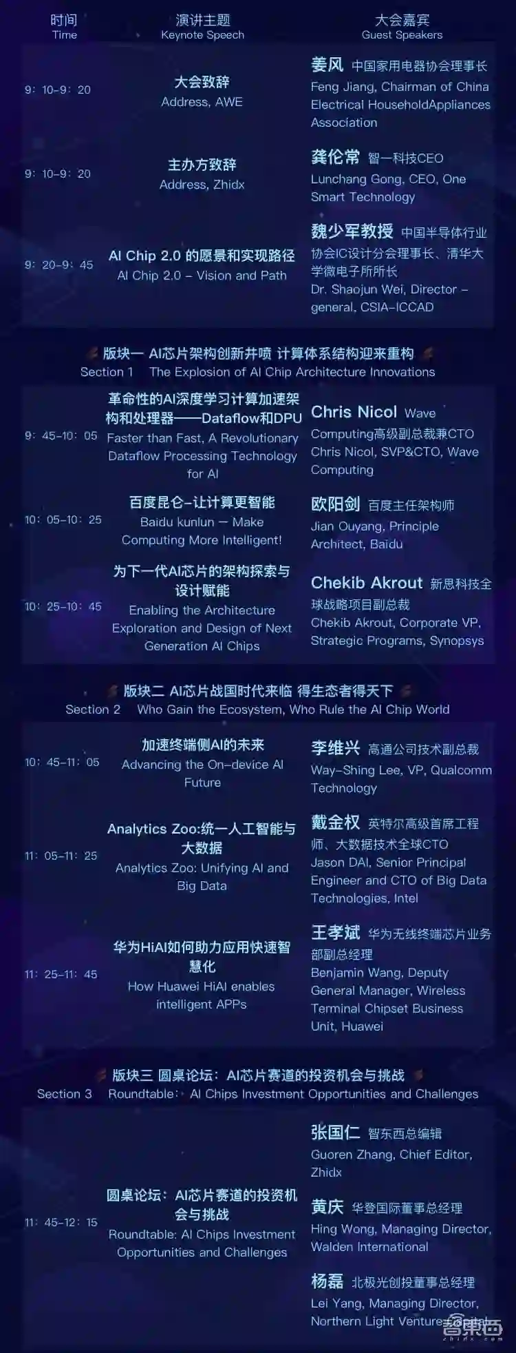 同时,作为今年大会的一大亮点,北极光创投董事总经理杨磊、华登国际董事总经理黄庆将站在顶级投资人的角度,在上午场的投资人高峰对话环节,与智东西联合创始人/总编辑张国仁进行对话,揭秘芯片行业投资的内在逻辑和行业未来机遇。