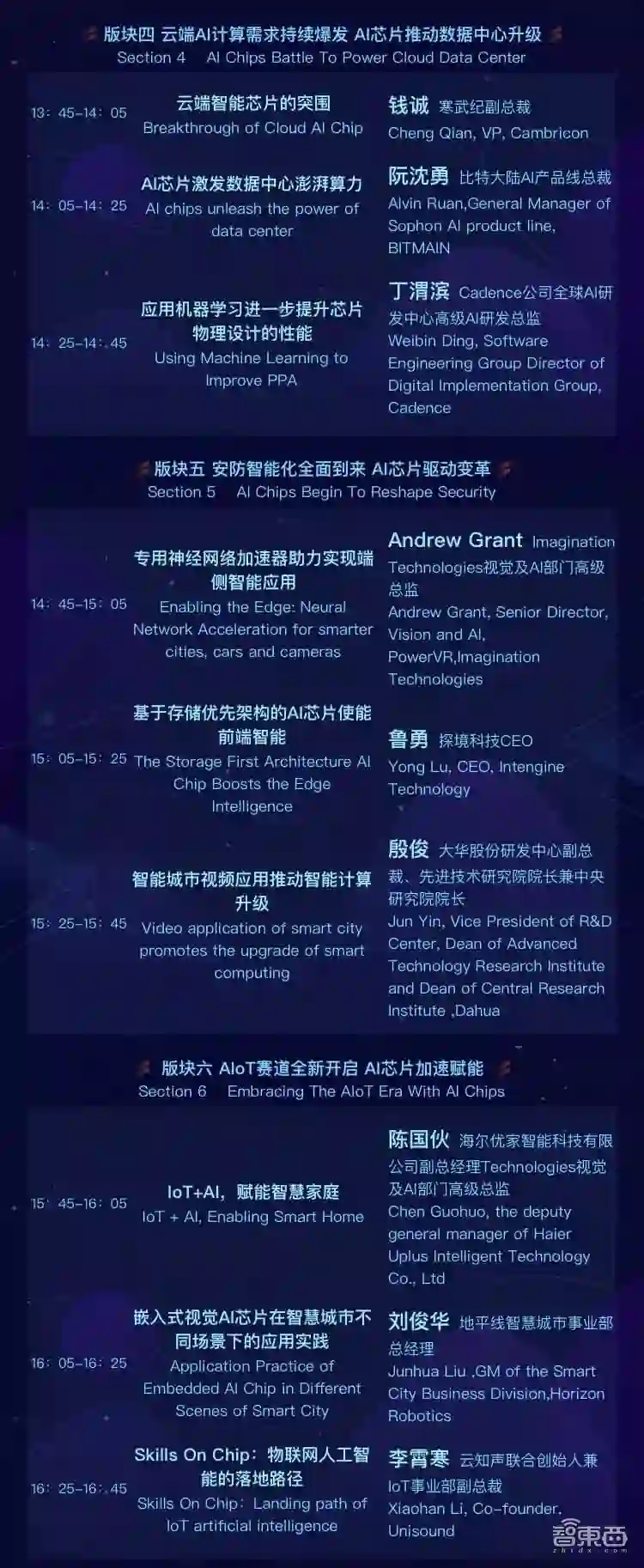 GTIC 2019AI芯片峰会分为上午场和下午场,将分为六个版块进行,上午场议程主要包括:“AI芯片架构创新井喷 计算体系结构迎来重构”、“AI芯片战国时代来临 得生态者得天下”、“圆桌论坛:AI芯片赛道的投资机会与挑战”;下午的三个版块分别为“云端AI计算需求持续爆发 AI芯片推动数据中心升级”、“安防智能化全面到来 AI芯片驱动变革”和“AIoT赛道全新开启 AI芯片加速赋能”。