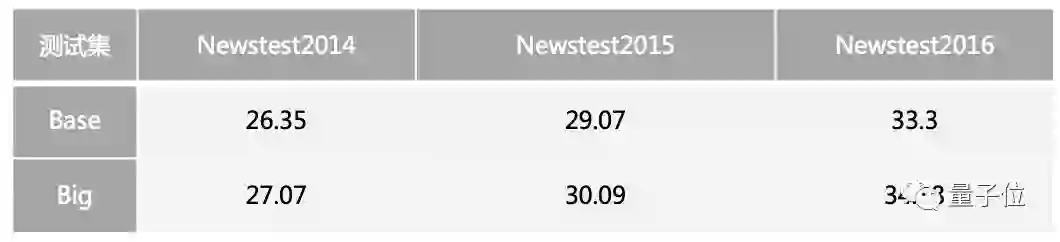 目前在未使用 model average 的情况下,英德翻译 base model 和 big model 八卡训练 100K 个 iteration 后测试 BLEU 值如下表所示: