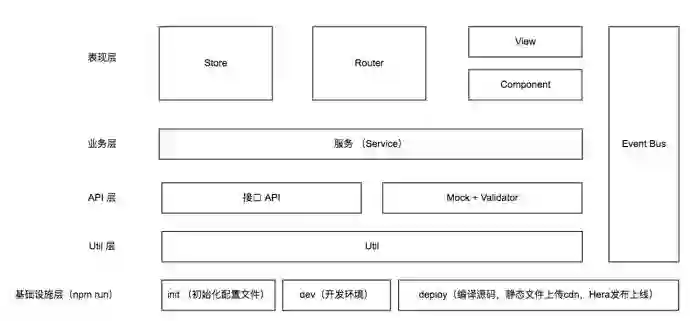 在开发这个项目前,我去参加了北京的首届 vueconf 大会,其中有一个主题是阴明讲的《掘金 Vue.js 2.0 后端渲染及重构实践》,讲了掘金重构后的架构设计,我觉得他们的架构设计的挺不错,所以参考掘金的架构,设计了一个更适合我们自己业务场景的架构