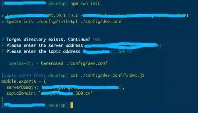 正巧之前我写了一个类似于 vue-cli 的工具 speike-cli,也是通过模板生成项目的一个工具,所以这一次正好派上用场,我把配置文件定义了一个模板,然后使用 speike 来生成了一个配置文件