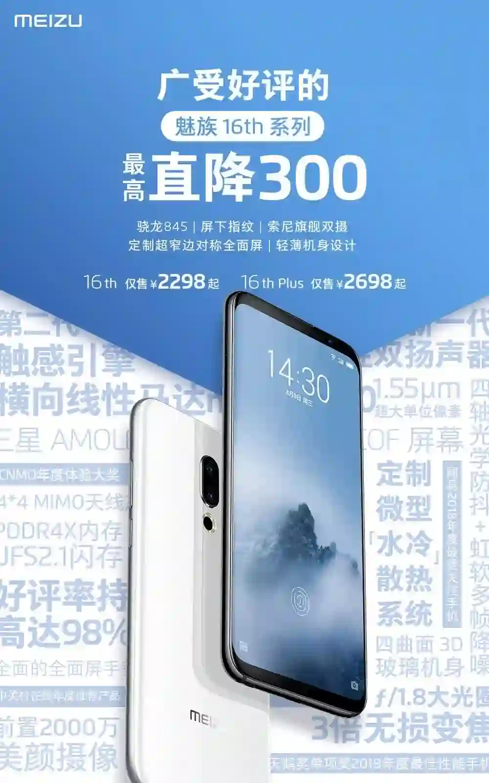 4 月 2 日,魅族宣布 16 系列手机最高降价 300 元,其中 16th 降至 2298 元起,16th Plus 降至 2698 元起,这也从侧面说明,距离 16s 系列发布会已经不远了。除了魅族 16s 之外,更大屏幕的魅族 16s Plus 和游戏手机 16T 不知道是否会在本次发布会同时亮相。