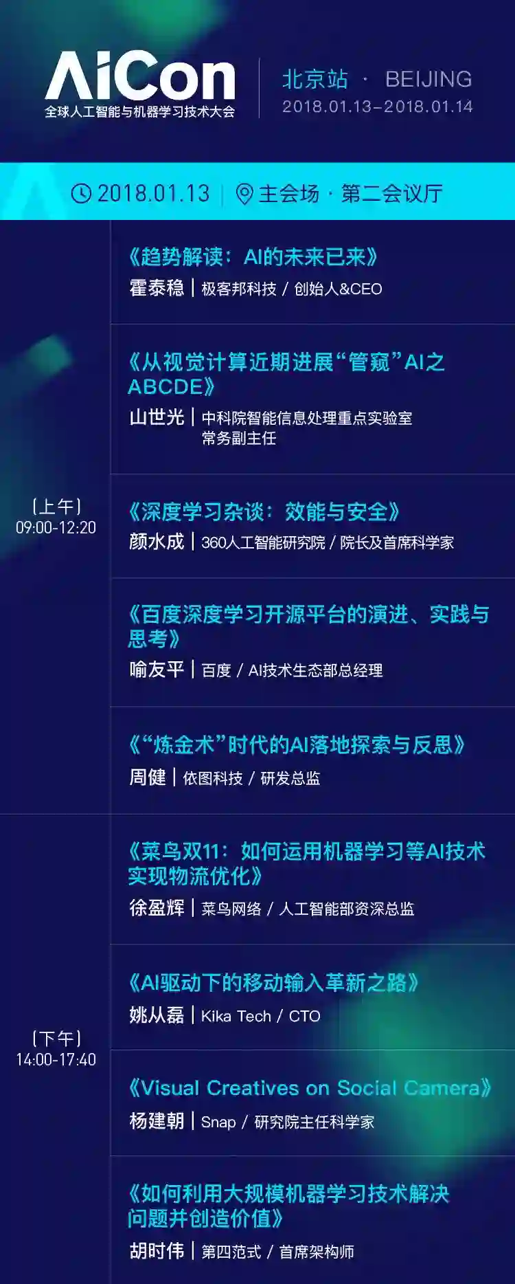 AICon 邀你共同见证 2018 年首个 AI 圈大事件,相信到达现场的你,一定会收获不一样的视野和思考!2 天大会精彩日程奉上,大家先睹为快吧!