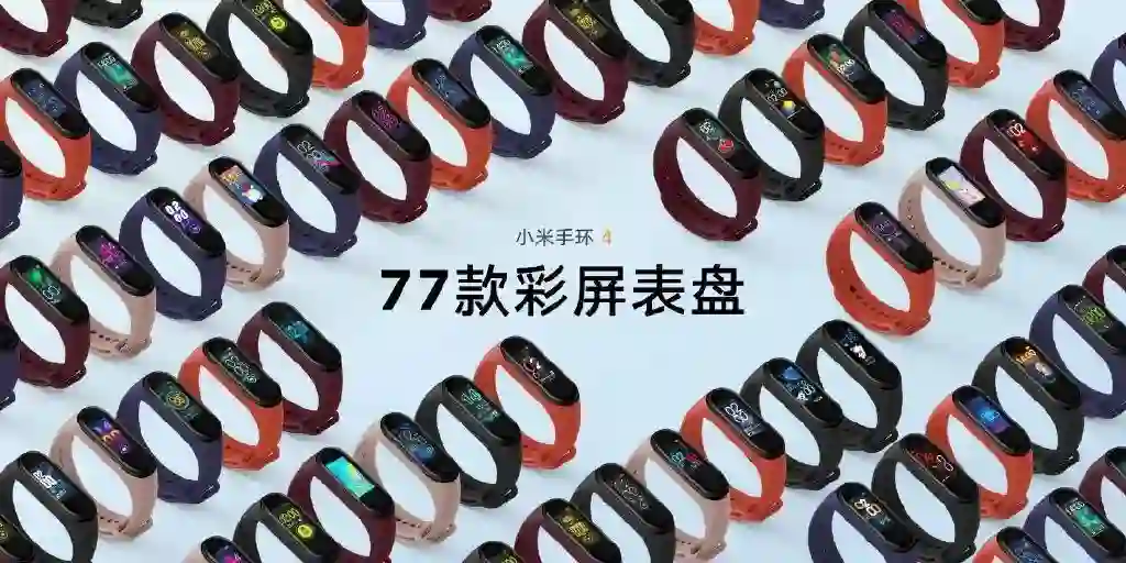 本次小米手环 4 最大的更新就是外观。手环正面配备了一块 0.95 吋 AMOLED 彩屏, 2.5D 的玻璃材质,让手环的小屏幕更加精致,更加圆润。在这块屏幕上,小米也为其配备了 77 种定制表盘主题,同时,五种颜色的腕带也更方便用户的个性定制。