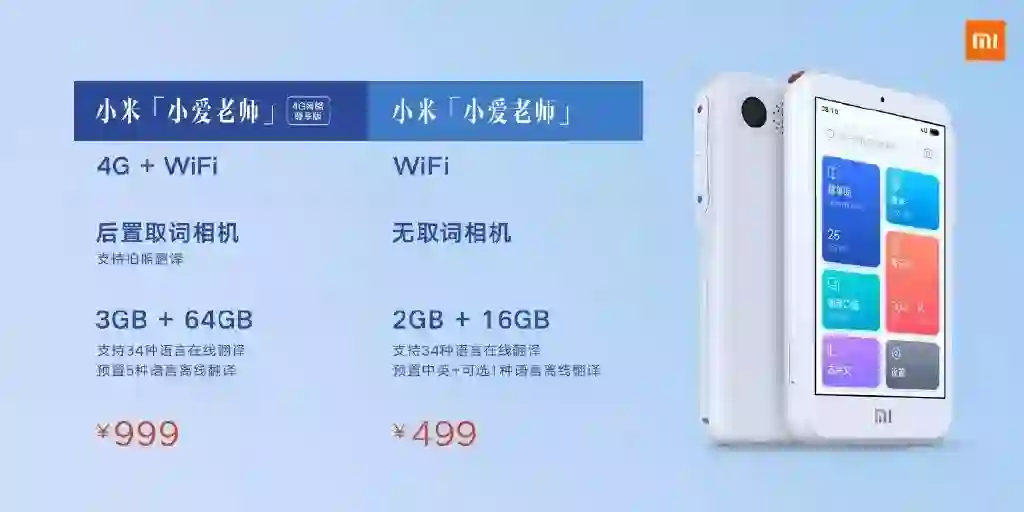 第一款产品是 AI 语言学习机,该系列产品分为两大版本: 4G 尊享版和标准版。其中 4G 尊享版后置取词相机,支持拍照翻译,支持 34 种语言在线翻译和 5 种语言离线翻译。该设备也搭载了 4 英寸屏幕和 25 天 600 小时超长续航。 6.18 全平台开售,尊享版售价 999 元,标准版售价 499 元。