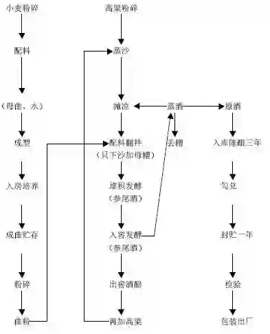 如果详细来说,茅台酒的酿制从重阳节(一般10月份左右),即重阳下沙,沙就是高粱。之后再经过大约1个月时间再进行二次投料,即图中再加高粱。再之后进行两轮蒸煮,时间约两个月。这就是很多人所说的九次蒸煮的前两次。跟后面7次不同的是,这前两次蒸煮都不进行取酒,只是为了增加发酵时间,产生更多微生物。