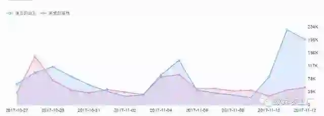 微博指数(蓝线为《演员的诞生》,红线为《亲爱·的客栈》)