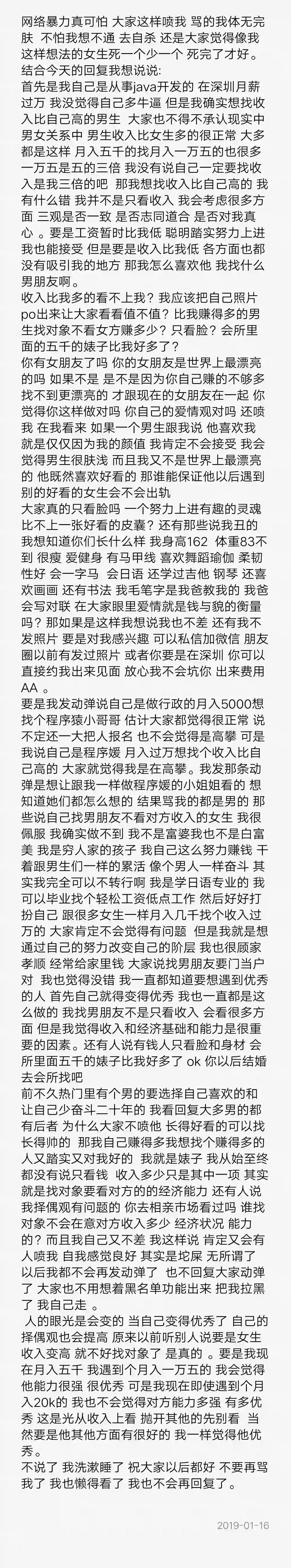 @秃头程序媛 :感觉大家有点儿把热门那个小姐姐逼急了......一开始还只是淡定回复,现在都逼急了....隔着屏幕打字真的很可怕!我觉得她只是人生阅历不够丰富,才会有这样的想法,大家理性评论就好了,不要披头上去就是喷QwQ