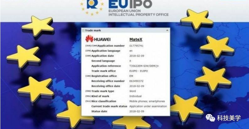 在欧盟知识产权局的官方网站上,“MateX”名称由华为驻英国代表提出,作为商标被归纳于手机、智能手机名录下。
