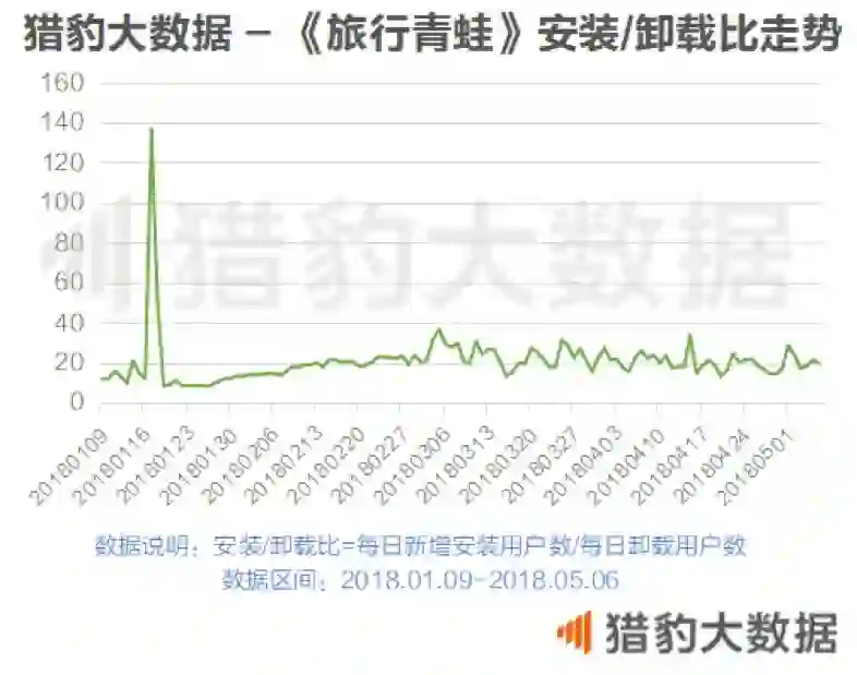 在最初的热度过后,该游戏的卸载人数经历了一个上升高峰,具体体现为安装/卸载比迎来低谷,但随后又逐渐稳定在20左右。