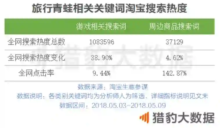 淘宝生意参谋的数据显示,游戏相关搜索词在预热到上线的这7天内有明显上涨,但周边商品搜索词仅上升4.62%,游戏带动的效果并不明显。