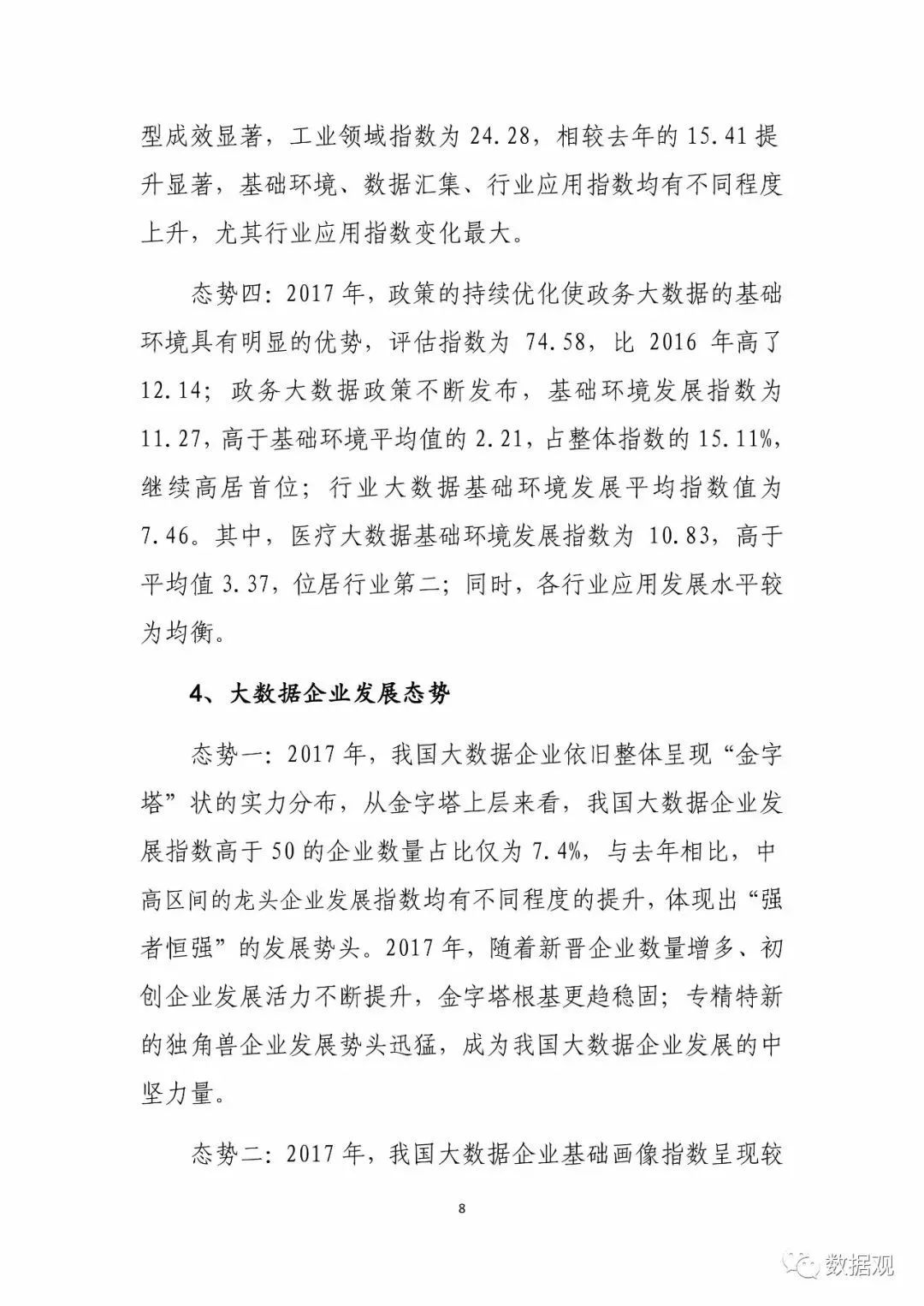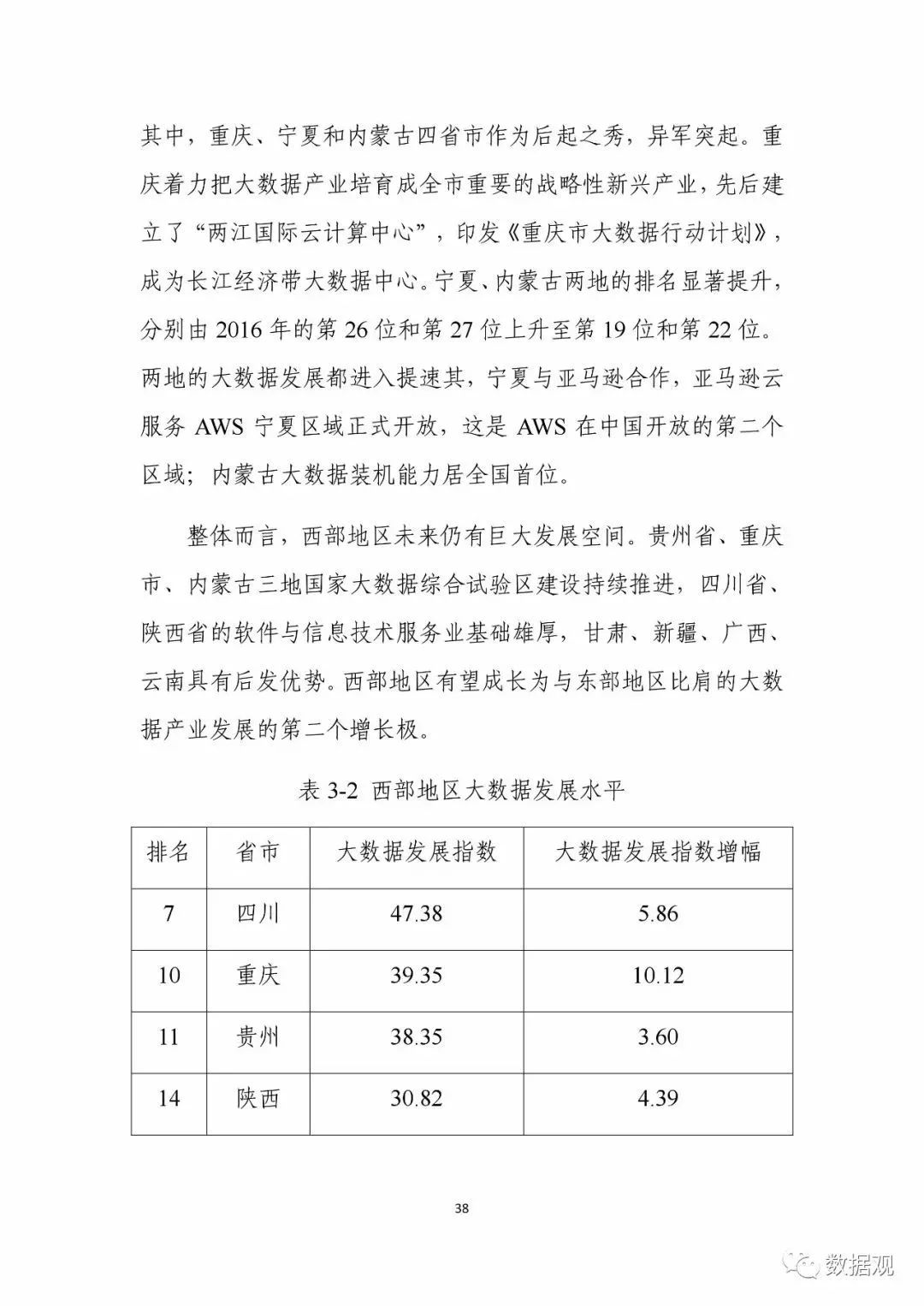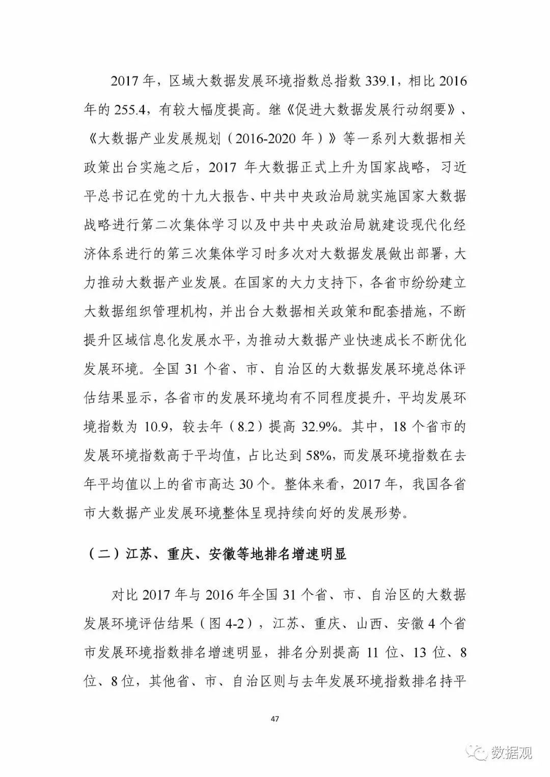数据观微信小编获悉,近日,中国电子信息产业发展研究院在工业和信息化部信软司指导下发布了《中国大数据产业发展评估报告(2018年)》(以下简称《报告》),《报告》延续了前期的研究重点及方向,依然聚焦于区域、行业、企业三个层面。