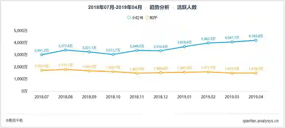 在用户规模方面,2019年4月易观千帆数据,知乎活跃用户不足1500万,小红书活跃用户超过4000万。活跃用户保持持续增长的小红书,有改革的底气,进入巨大的用户量阶段商业化势在必行;长期处于月活增长停滞甚至下滑的知乎,平台大V接连出走,知乎被迫采取了保守的“不作为”策略。