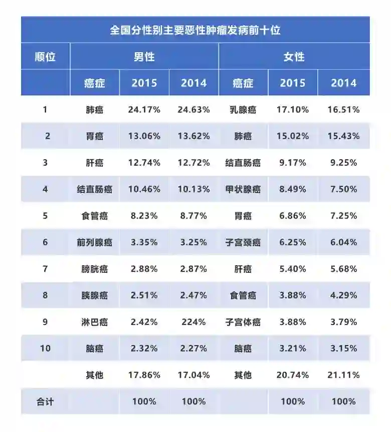 (由于全国肿瘤登记中心的数据一般滞后3年,本次报告发布数据为全国肿瘤登记中心收集汇总全国肿瘤登记处2015年登记资料。)