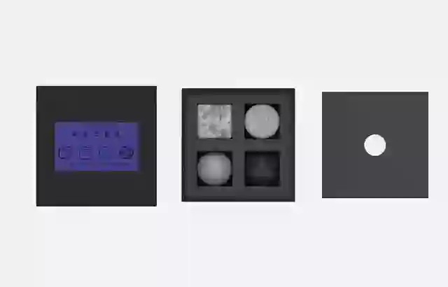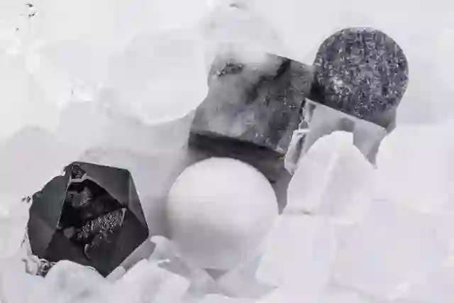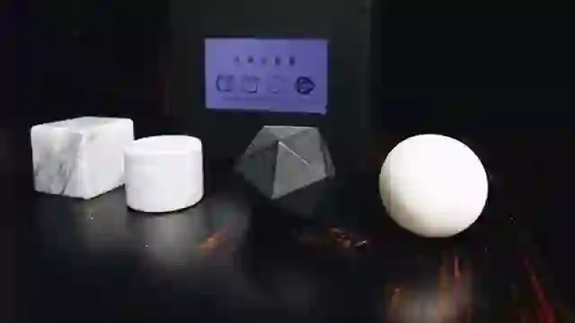 立方体、圆柱体、圆球形和二十面体营造出来的氛围非常符合石材本身的冷酷气质。