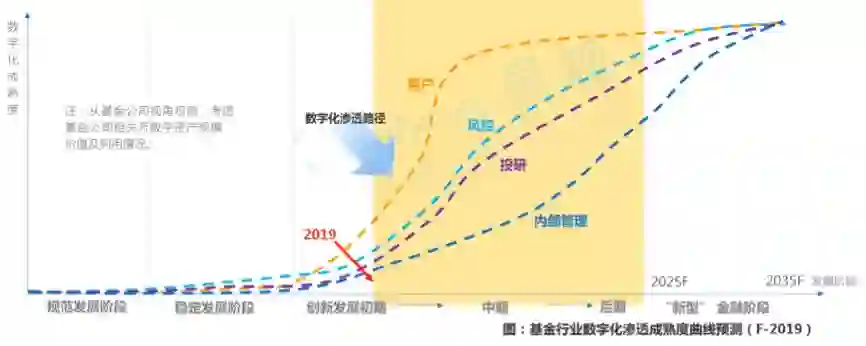 2019年成为基金行业深度服务用户关键一年,首先,市场的逐渐好转为基金行业深度服务用户创新提供较好的发展契机,其次,公募基金已经过21年的探索、发展,当前已经迈入金融科技驱动产品、渠道、服务创新发展的阶段,再次,基金行业的数字化成熟度、渗透速度开始加快,深耕服务成为当前机构间参与数字用户(即数字化的投资者)资源争夺的核心抓手。