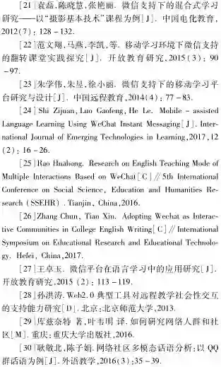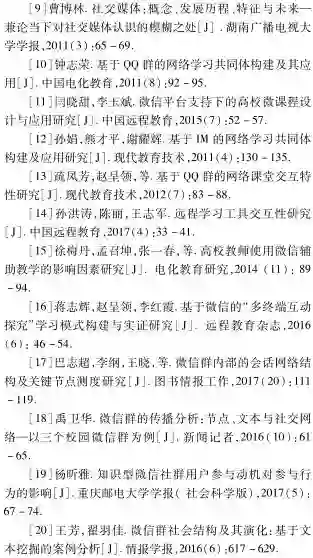 总体来看,缺少对于学生自发建立的微信学习群的交互规律的研究,此类应用场景因缺少教师的参与、属于非正式学习而被研究者忽略,但在高校教学过程中普遍存在,值得引起研究者的关注。
