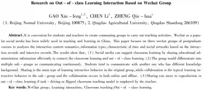 关键词:微信群;教学交互;课堂教学;课外学习