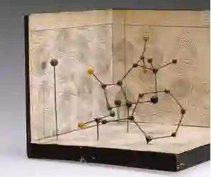 围绕青霉素的核心结构,当时顶尖的化学家们分为了两大派,一派以Robert Robinson(1947年诺贝尔化学奖得主)、John Cornforth(1975年诺贝尔化学奖得主)为主,他们认为青霉素的核心结构属于唑酮联噻唑环结构类型;另一派则以牛津团队中的Abraham、Chain以及美国Merck公司的化学家为主,他们认为青霉素的核心结构属于β-内酰胺并噻唑环结构类型。Robinson等化学家反对β-内酰胺结构的主要原因在于:β-内酰胺环是一个四元环,几何上要求环的内角都是90°,但是构成环的羰基碳原子正常的成键角度是120°,其他几个原子的正常成键角度都是109°,因此这个环的所有成环原子的键角都负向偏离了正常角度,相当于是被挤压着成环,具有明显的“张力”,所以不稳定。这一化学发展历史上著名的争议,最终被英国杰出的晶体化学家Dorothy Crowfoot Hodgkin(图5)于1945年通过X射线晶体衍射法确定了青霉素的三维晶体结构而解决(图6)。实验结果表明,青霉素的实际结构属于β-内酰胺并噻唑环的结构类型。回顾青霉素的整个发现过程,正是这一高活性的结构特点使青霉素在常见的分离条件下容易分解,因此,从1928年Fleming发现青霉素的活性开始直到20世纪40年代初,科学家才获得了足够进行生理活性研究和结构研究的纯青霉素。后续研究表明,青霉素对特定致病细菌的选择性抑制作用也来自于这一高活性的结构特点。