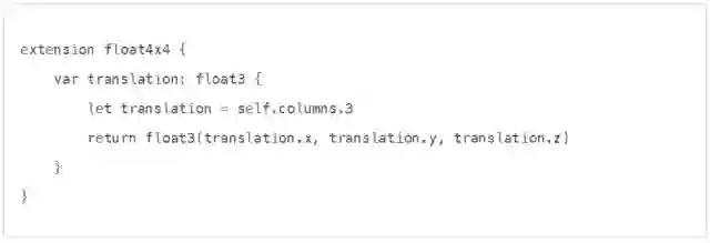 如果第一个命中测试结果可以安全地展开,那么我们将类型的矩阵转换matrix_float4x4为float3。
