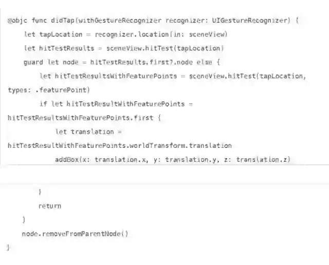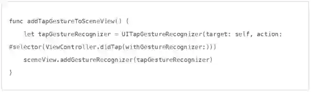 didTap(withGestureRecognizer:) 回调函数。然后我们将tap手势识别器添加到sceneView中。