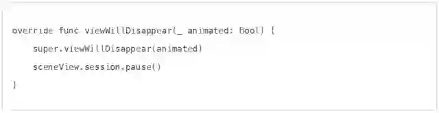 在该 viewWillDisappear(_: )方法中,我们只需告诉我们的AR会话,停止跟踪视图内容的运动和处理图像。