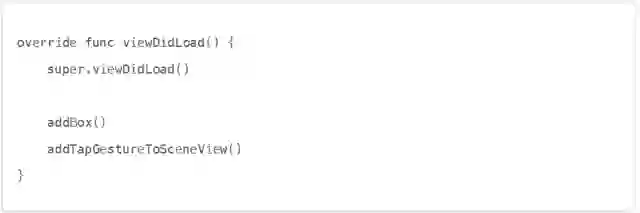 不用多说,让我们增加现实。我们要开始添加一个框。将以下代码插入到 ViewController中: