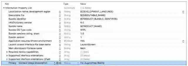 增强现实。这是自iOS 10发布以来的一个要求。因此,打开Info.plist。右键单击空白区域,然