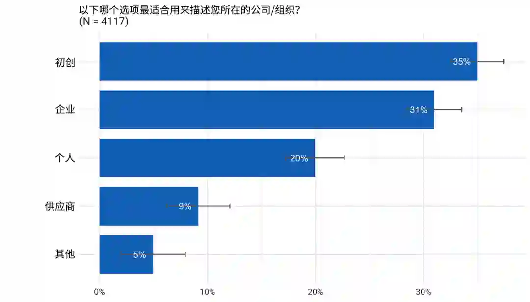 我们的用户群发生了一些明显变化。首先,为公司工作的用户比例从第一季度和第二季度的 26% 大幅增加到 31%,为初创团队工作的用户比例则稳定在 35% 左右。