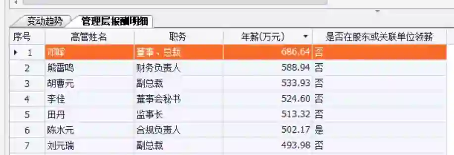 东方财富Choice金融终端数据显示,2016年,邓晖先生的年薪为686.64万元,很幸运由于刘元瑞先生已经当上了副总裁,所以年报中披露了他的年薪——493.98万元。邓先生税前一年比他多了192.66万元。