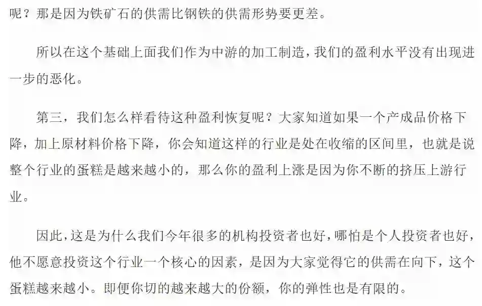 上面可以看出,刘先生在讲自己所研究的行业时,逻辑严密,论点清楚。而说到“从来没有很多人听我们仔细讲过这个行业”,多少是道出了研究一个大家都不看好行业的分析师心中的寂寞。