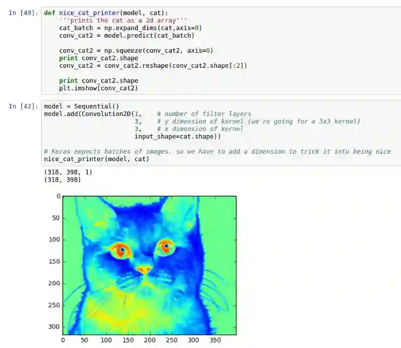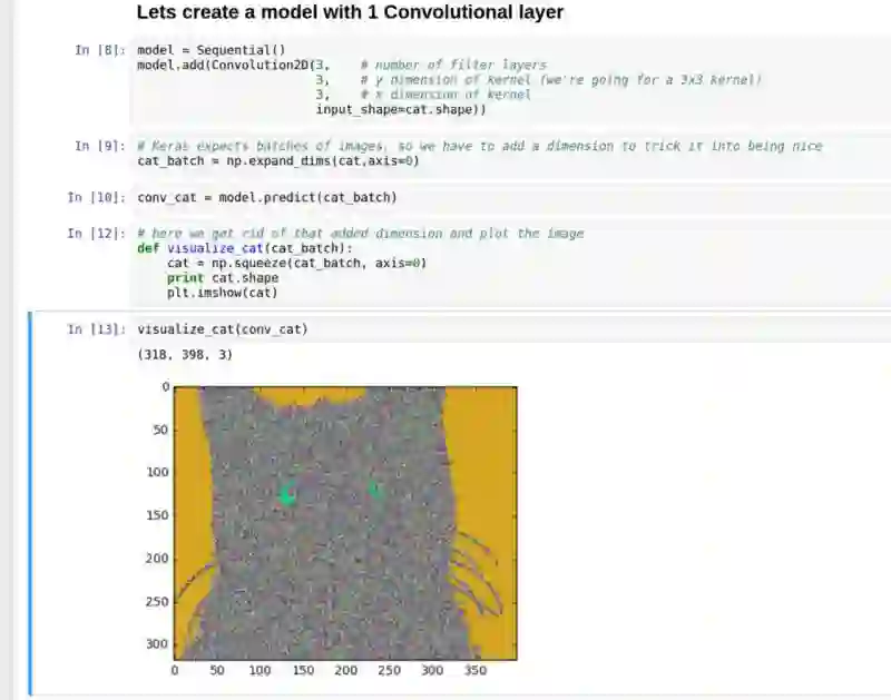 这是用一个3*3的卷积核和三个滤波器处理的效果(如果我们有超过3个的滤波器,那么我可以画出猫的2d图像。更高维的话就很难处理)