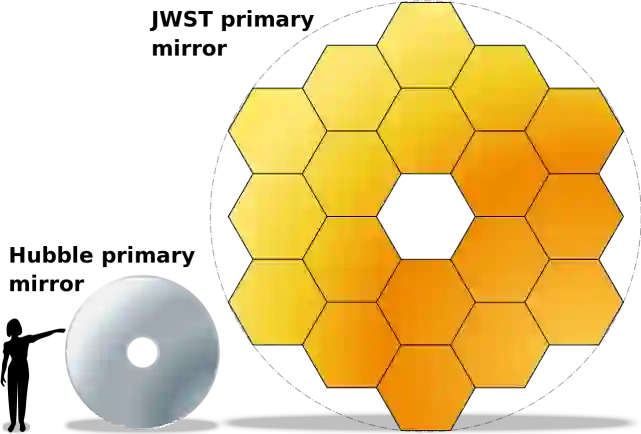 图注:哈勃望远镜和韦伯望远镜主镜大小比较。