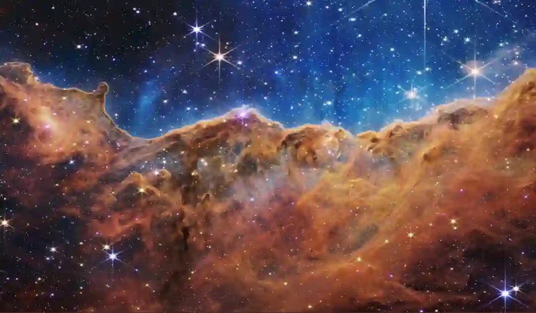 图注:船底座星云,该星云内部孕育着大量的大质量恒星。