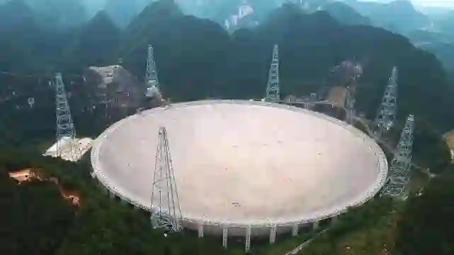 位于我国贵州的FAST望远镜,俗称“天眼”望远镜,口径达到了500米,但FAST望远镜是地基望远镜,主要在射电波段(波长在0.1米到4.3米)工作。由于大气层对射电波段的透明度较好,这种类型的望远镜在地面上工作得就很好。