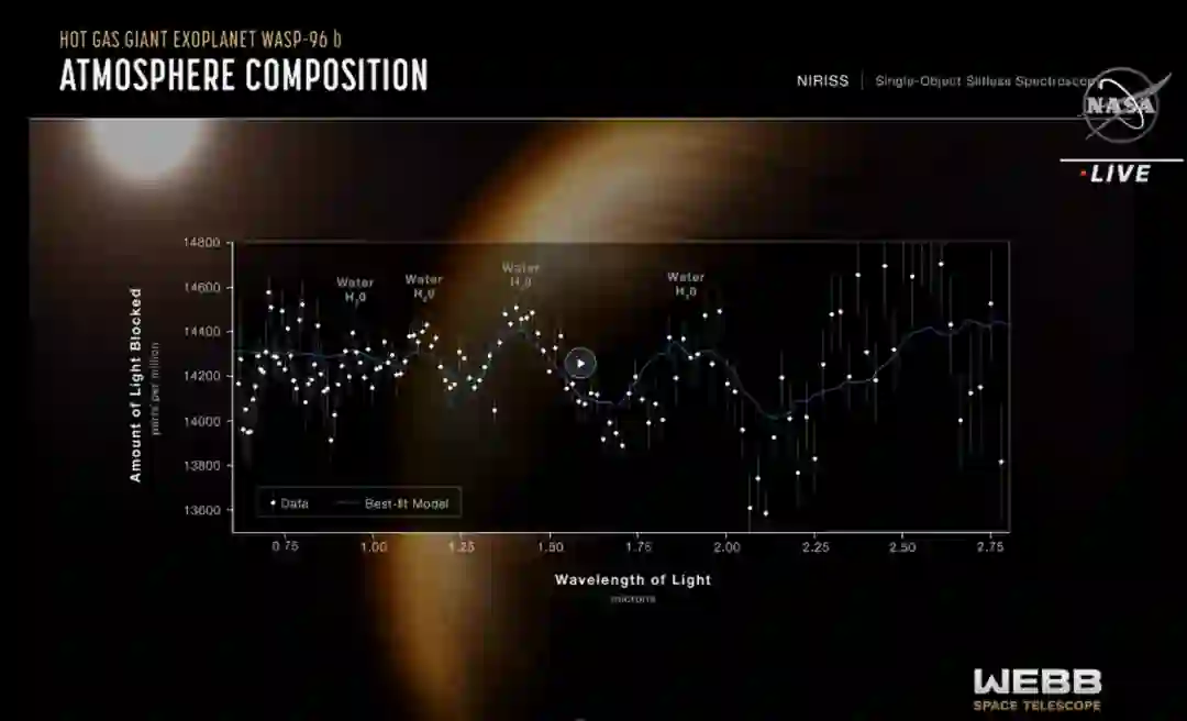 3、系外行星WASP-96 b是一颗系外行星,顾名思义,这是一颗太阳系之外,围绕其他恒星运行的行星。这颗行星的质量大约是木星的一半,距离中央恒星非常近,公转周期仅3.4个地球日,表面温度非常高,比较适合做光谱分析。