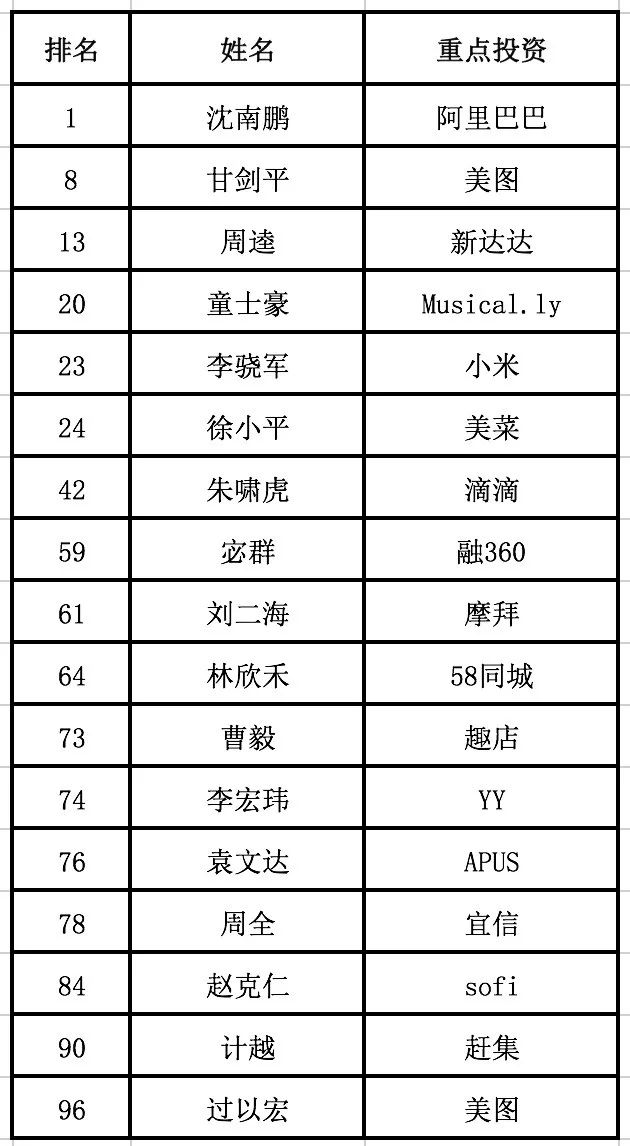 除此之外,越来越多的出海企业在海外影响力的增强也是让中国投资人愈加显眼的重要因素。GGV管理合伙人童士豪从2013年进入榜单后连续出现,其项目重要投资小米、wish、musical.ly都是近年在印度、欧美等地有相当大影响力的企业。