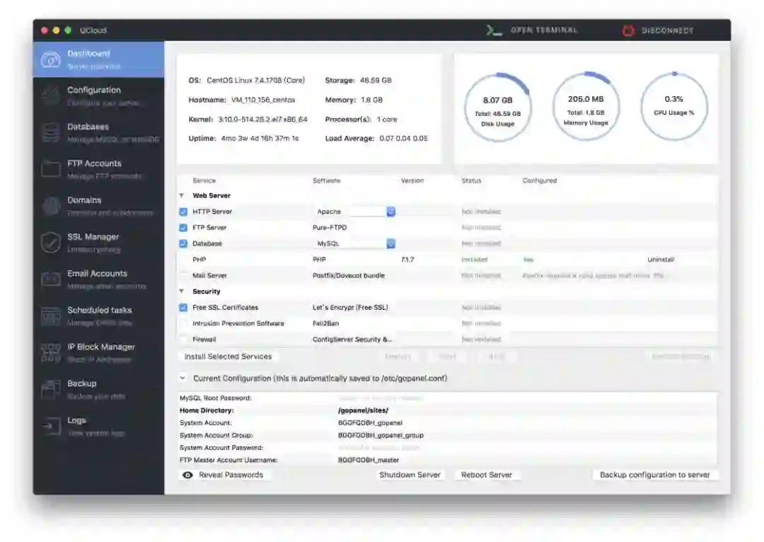 goPanel 2 是一款功能极为丰富的远程服务器管理工具,支持 Ubuntu、CentOS、Debian 等主流 Linux 发行版及 Apache、Nginx、MySQL、MariaDB 等常用软件。你可以利用它概览服务器状态,监控系统变化,管理 CRON 周期任务,备份服务器数据及回滚,快速登录终端等。