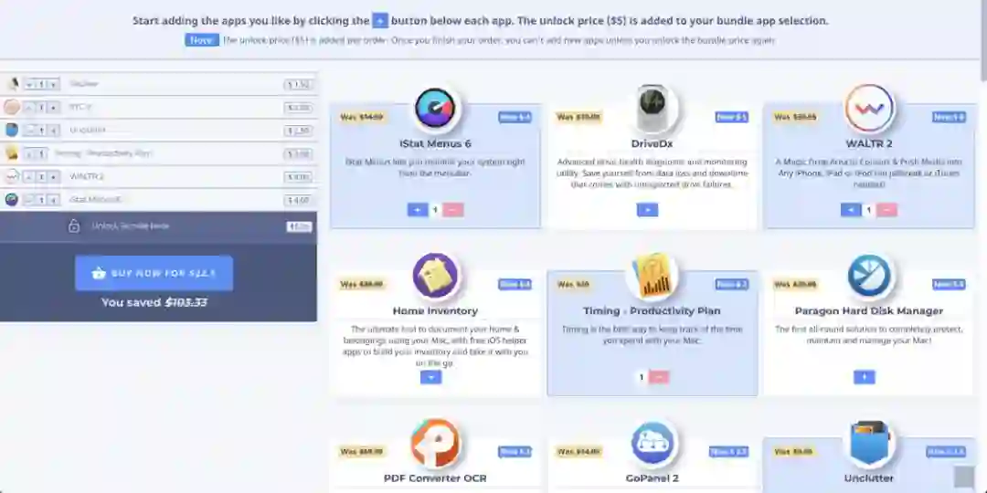 要想以优惠价格购买上述应用,你需要首先支付 5 美元的解锁费用,随后便可以自由添加应用,最后支付如数金额,等待授权邮件就可以了。由于本 Bundle 中每款应用都可以添加最多 3 份授权,因此,你还可以和其他朋友拼团购买,平摊解锁费用。