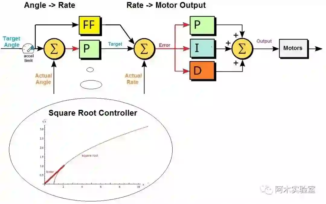 在对这些函数进行任何调用之后,调用 AC_AttitudeControl:: rate_controller_run() 。这将上述方法的输出转换为 通过它的set_roll,set_pitch,set_yaw和set_throttle 方法发送到AP_Motors库的滚动,俯仰和偏航输入 。