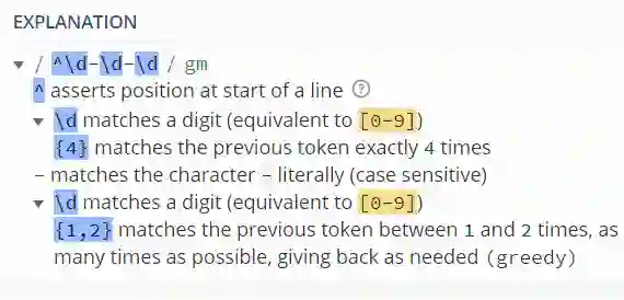 比如匹配指定格式的日期:^\d{4}-\d{1,2}-\d{1,2},看不懂没关系,这个网页提供了详细说明: